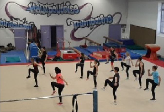 Cours mixte avec une initiation à l acrobatie gymnique au sol et au trampoline. Une activité ludique et varié.