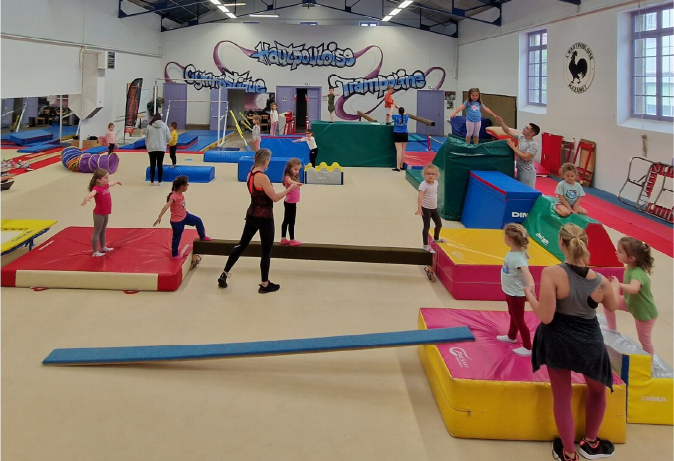 Une discipline mixte consistant à apprendre des enchaînements acrobatiques aux différents agrès ayant pour but de les présenter lors des compétitions. Chaque année, les éducateurs évaluent, les capacités de votre enfant afin de lui proposer, s’il le désire, d’intégrer le secteur compétition.